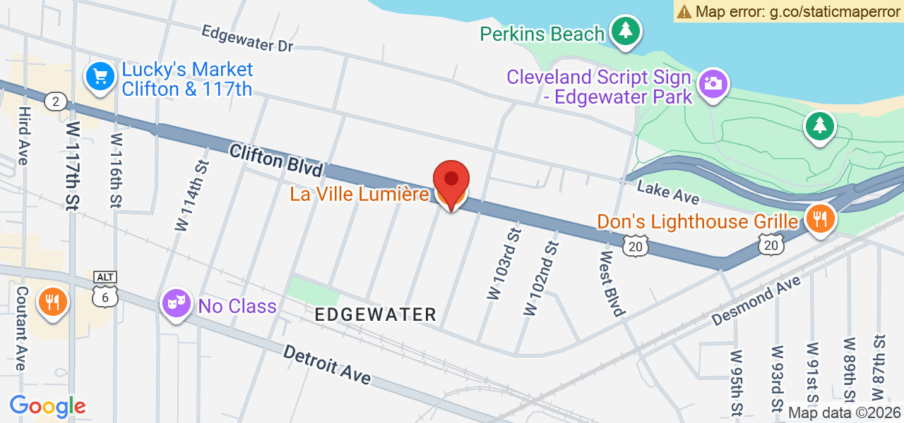 The restaurant is located at 10427 Clifton Avenue, just west of the West Shoreway and Edgewater Park.