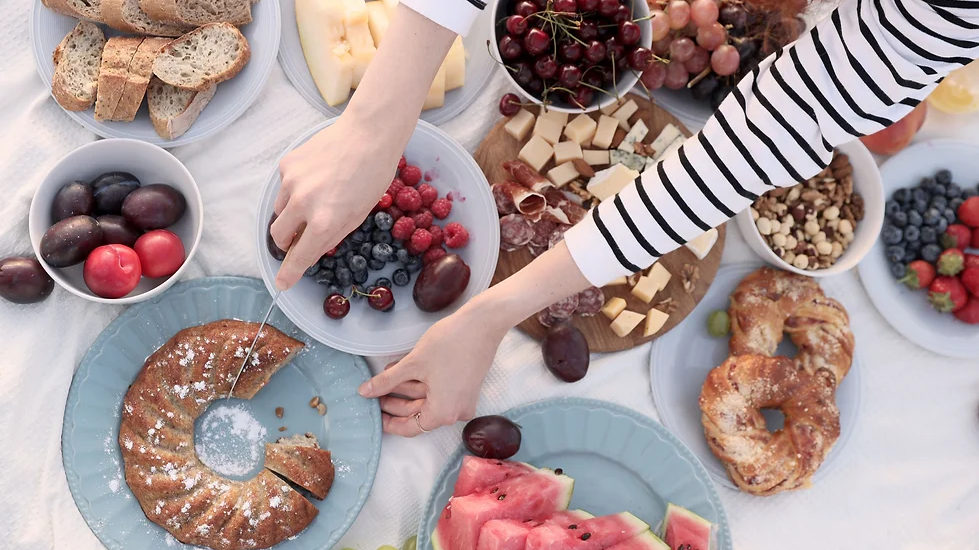 Brunch Menu: Assorted salads, hot and cold dishes, Fruits and desserts, beverages (tea, coffee, fruit juice)