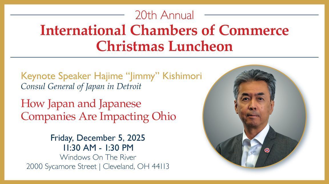 We’re honored to welcome Hajime “Jimmy” Kishimori, Consul General of Japan in Detroit, as our keynote speaker. Mr. Kishimori will share his ongoing mission to foster and strengthen Japan’s vibrant economic, governmental, educational, cultural, and people-to-people relations with Michigan and Ohio.