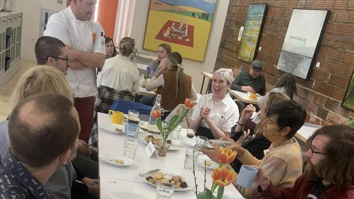 The FACC Ohio Culinary Community had it’s first in-person meeting yesterday, a walking tour to four French-inspired culinary spots on Lee Road in Cleveland Heights, including Marchant Manor Cheese, Sophie La Gourmande, Mitchell's Fine Chocolates, and CLE Urban Winery. Each stop was a great opportunity to hear the story of some brave and talented culinary entrepreneurs, to taste some delicious food, and to build our French culinary network …and friendships…in Ohio. Thanks to our hosts for telling their stories and opening their doors! (BTW: We hope to post the tour we took on our FACC sites so that Clevelanders, and visitors to Cleveland, can they make a similar culinary pilgrimage on their their own time this summer.)